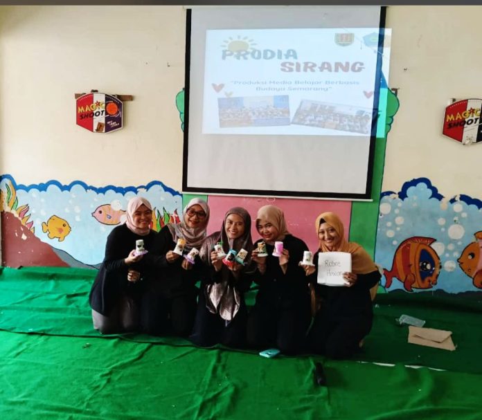 “Kegiatan puncak dari Prodia Sirang adalah pembuatan media ajar secara berkelompok. Paguyuban telah menyiapkan 5 mistery box yang di dalamnya sudah beberapa bahan dan alat untuk membuat media. Ada box wayang angka, wayang hewan, kereta huruf, robot hewan, dan origami lucu. Mama-mama secara berkelompok menyelesaikan tantangan dari mistery box tersebut kemudian dipresentasikan cara memanfaatkan media tersebut dalam pembelajaran di TK,” kata Dian yang juga Kepala SDN Gajahmungkur 03 Kota Semarang tersebut.
