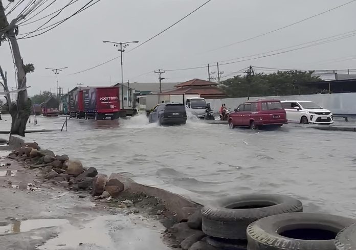 Suasana banjir rob di Jalan Pantura Demak (Foto: Nandha Resavia).
