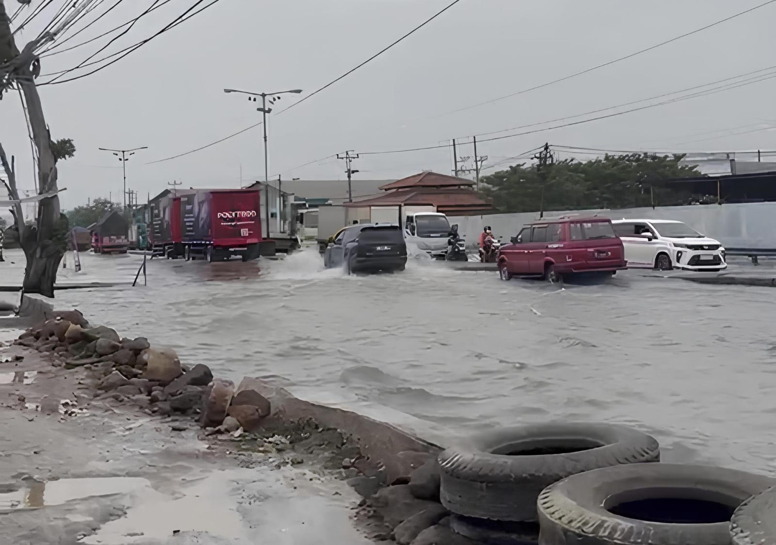 Dari hasil observasi pada Kamis, 19 Juni 2025, genangan rob terlihat menutupi jalan sejak pagi. Tidak ada tanda-tanda air surut, kondisi ini telah berlangsung sejak bulan lalu. Terlihat jalur arah Semarang motor-motor tampak goyah menembus genangan yang hampir menutup lubang knalpot motor.