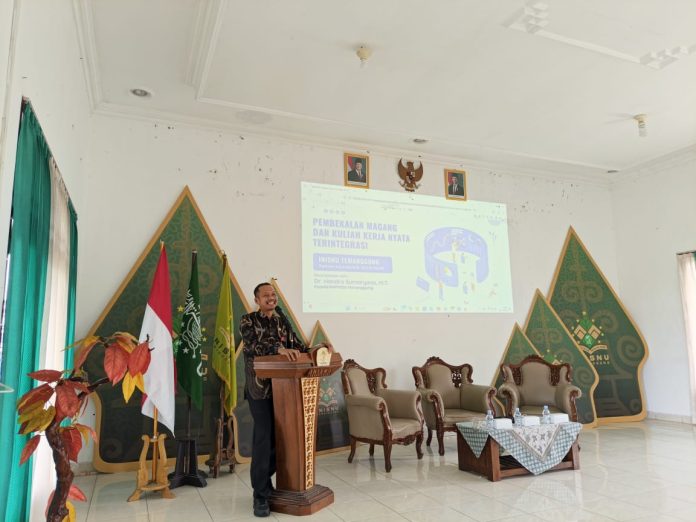 Temanggung, Harianjateng.com – Wakil Rektor I Institut Islam Nahdlatul Ulama (INISNU) Temanggung Dr. Hamidulloh Ibda, M.Pd., menegaskan pentingnya penguasaan metode ilmiah bagi mahasiswa yang akan mengikuti Magang dan Kuliah Kerja Nyata (KKN) Terintegrasi Tahun Akademik 2025/2026. Hal itu disampaikan dalam kegiatan pembekalan yang digelar pada Jumat-Sabtu, 3-4 Oktober 2025, di Aula lantai 3 kampus setempat.